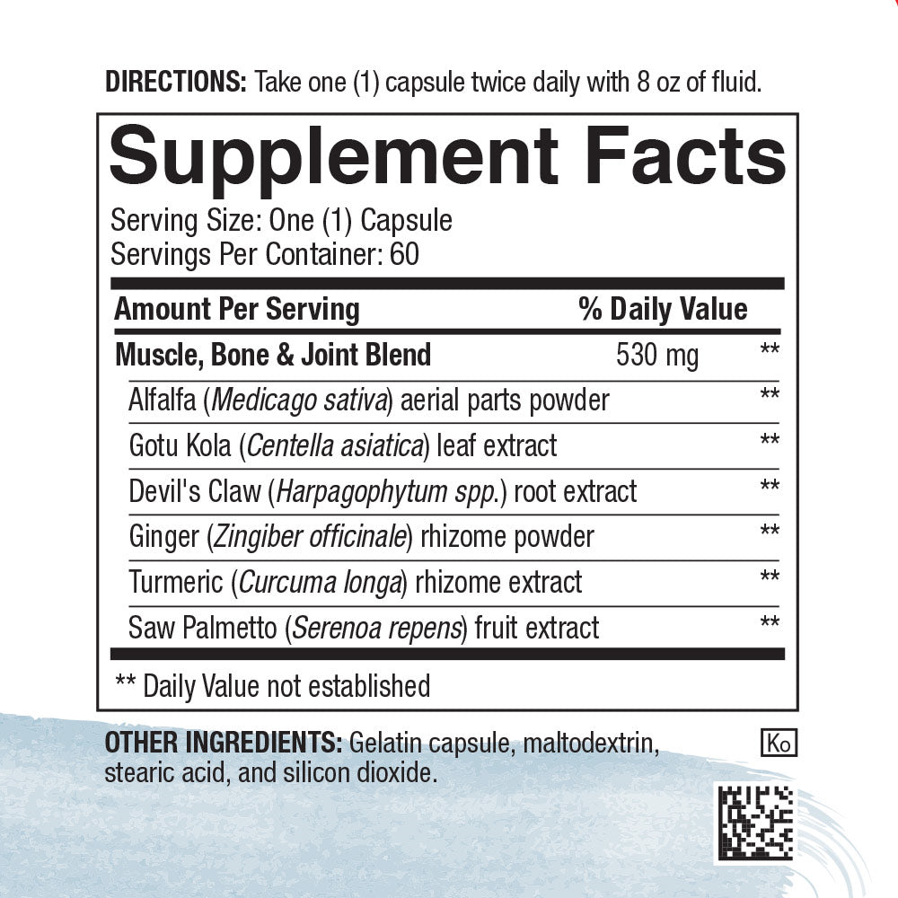 MusculoSkeletal Formula promotes well-being by placing emphasis on the importance of your body’s chassis -- your structural system, composed of all your bones, connective tissues (ligaments, tendons, and fascia), and joints. When these parts of you aren’t receiving proper nutrients every day, you will someday find it hard to move and live life to the fullest. That is if you don’t already.
